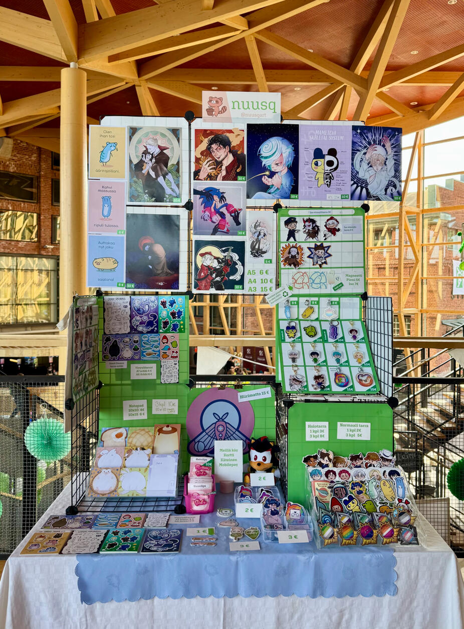 Olen nuusq, vapaa-ajan taiteilija pohjoisesta ja myyn taidettani nuusqart nimen alla. Aloitin taidekujailun 2023 syksyllä. Olen pöytäillyt seitsemässä tapahtumassa, joista viimeisimpänä 2025 Desucon.